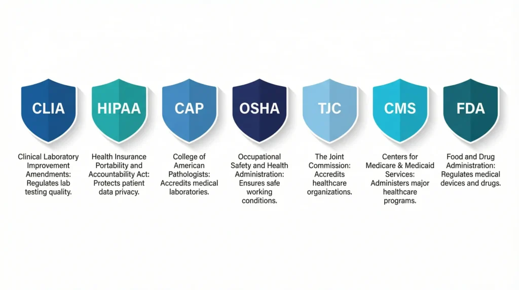 Healthcare labs work under several important rules. Each one plays a different role, and together they shape how lab compliance works.